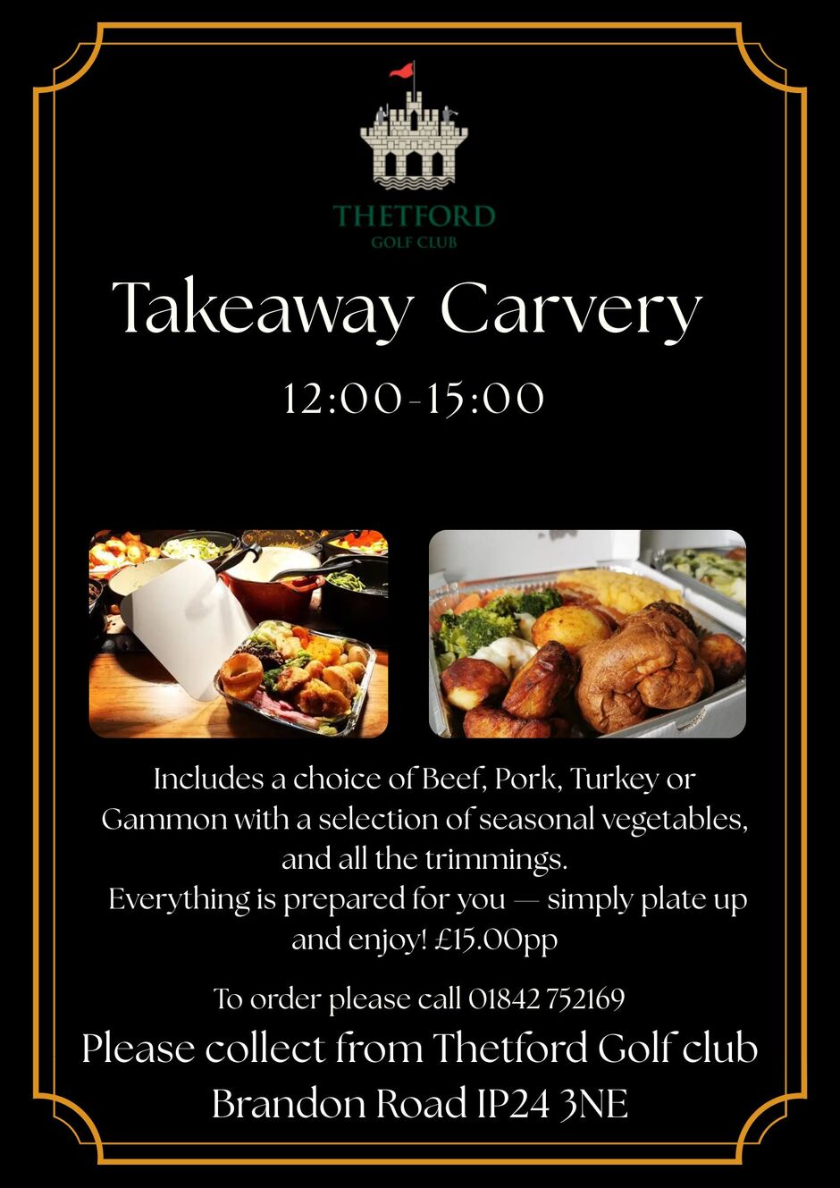 Come and enjoy us for one of our delicious carvery. Please call 01842 752169 to book your table.